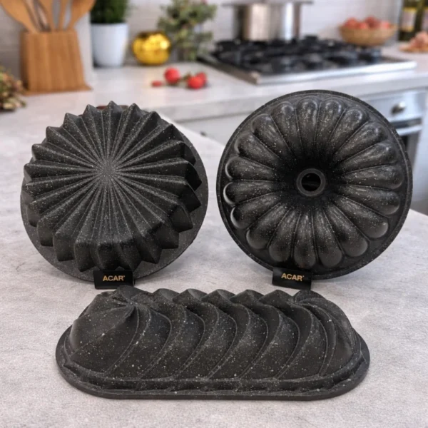 3 LiDöküm Granit Kek Kalıbı Siyah