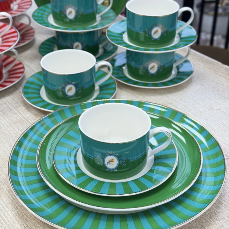19 Parça Prilla Porselen Pasta Seti Yeşil