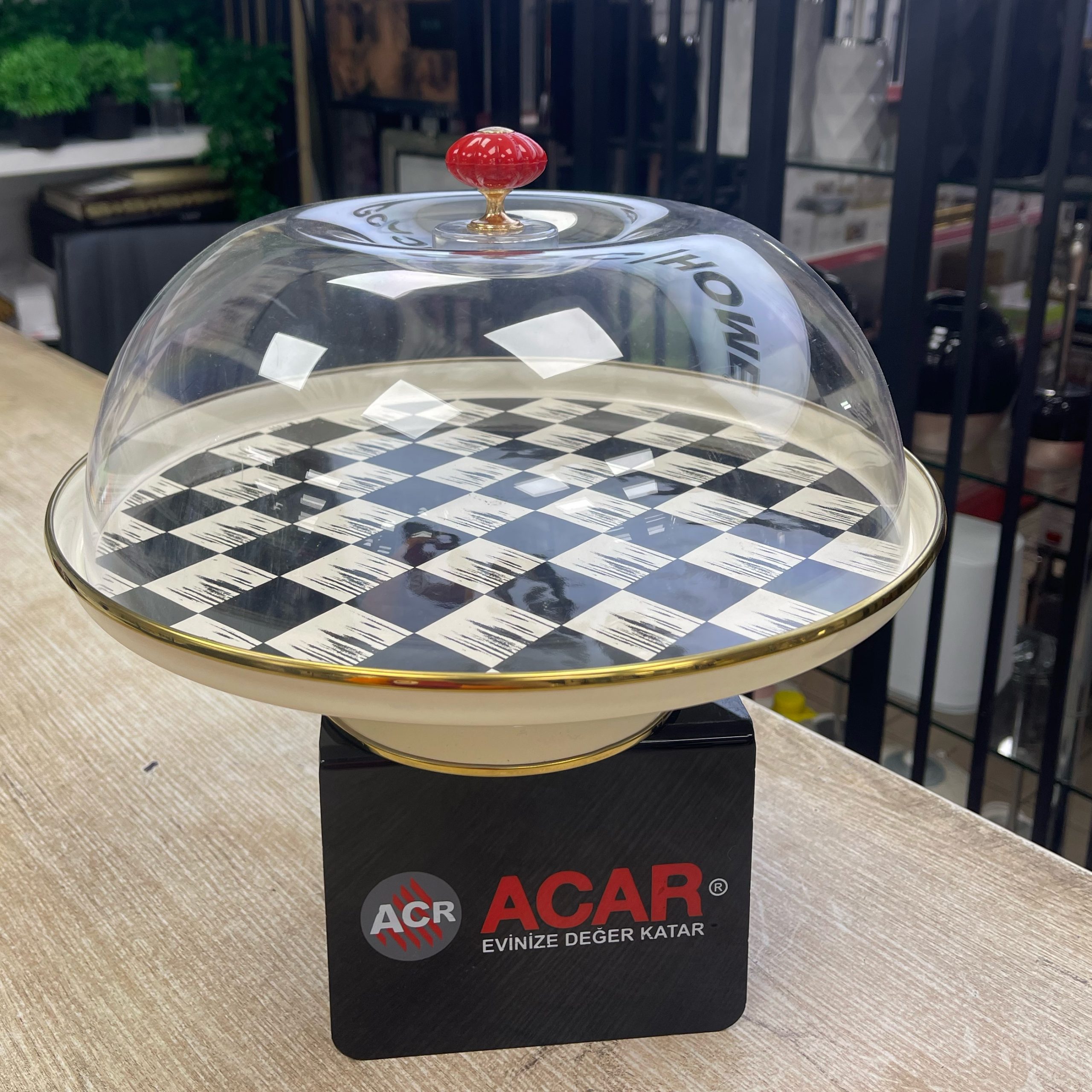 Dama Desen Kapaklı Pasta Fanusu